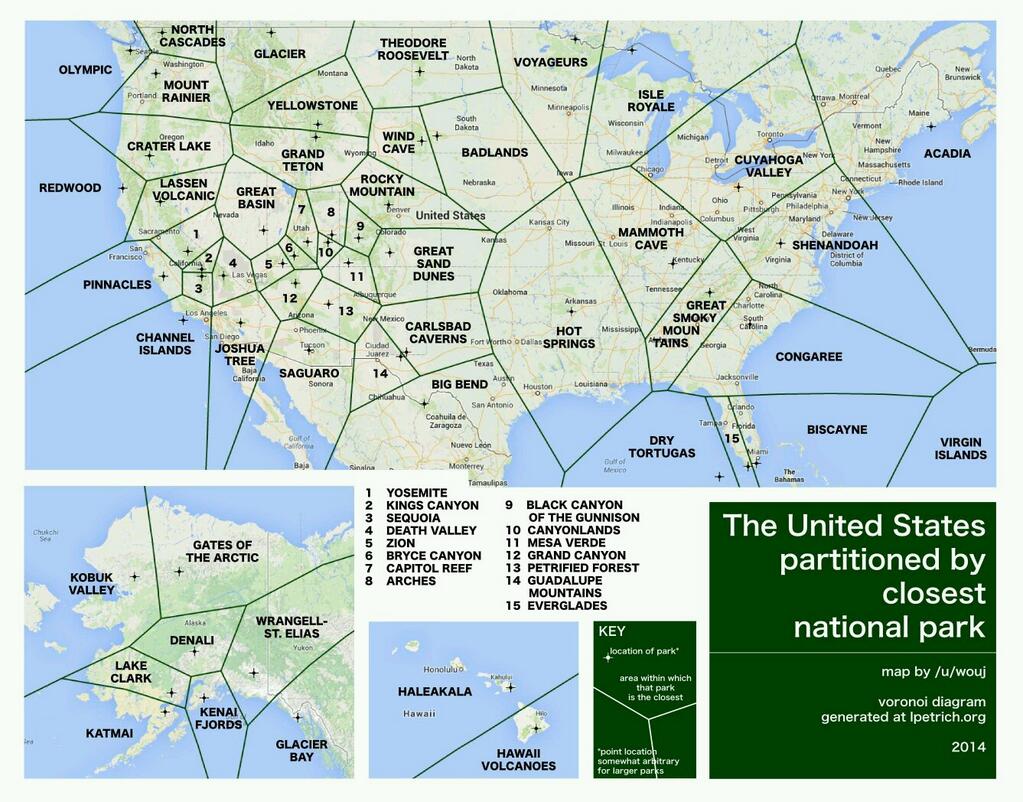 The US Partitioned by the Closest National Park March 21, 2015Everything Else Leave a comment Get out there and visit your nearest national park!